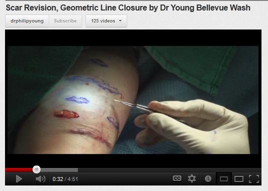 Deep scar from a spider bite with no improvement with 6 laser treatments by Dr. Philip Young | Aesthetic Facial Plastic Surgery » scar treatment geometric line closure video
